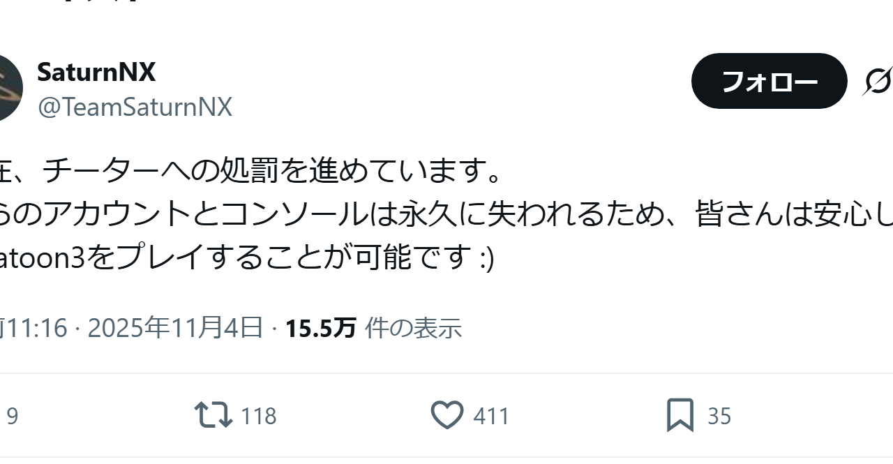 運営の代わりにチーターがBANするゲームってスプラぐらいじゃね()