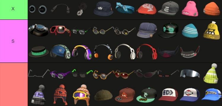 おしゃれとかコーデとかには関係ないけど、Xマッチしてて、こいつ強そうだなって感じたり上位の人に多いアタマギアは、バンダナとかメッシュキャップかなぁ