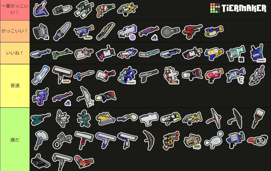 こういうTier表でスプロラが必ず下位に甘んじるの納得いかない。みんな大会でスプロラが高理論値ブキを破壊して大暴れするシーン大好きなくせに