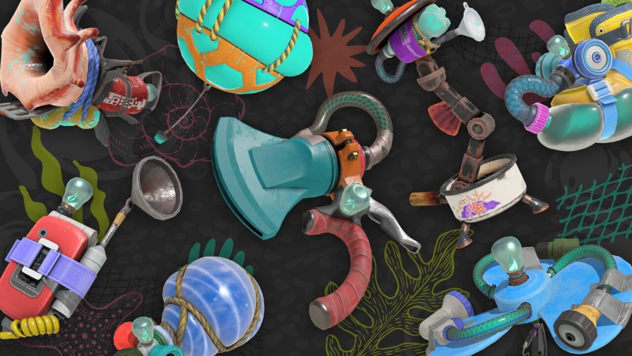 ガジェットはシャケがたまに落とす「ガジェットパーツ」を付けることで性能を強化したり、変化させたりできるようだ。