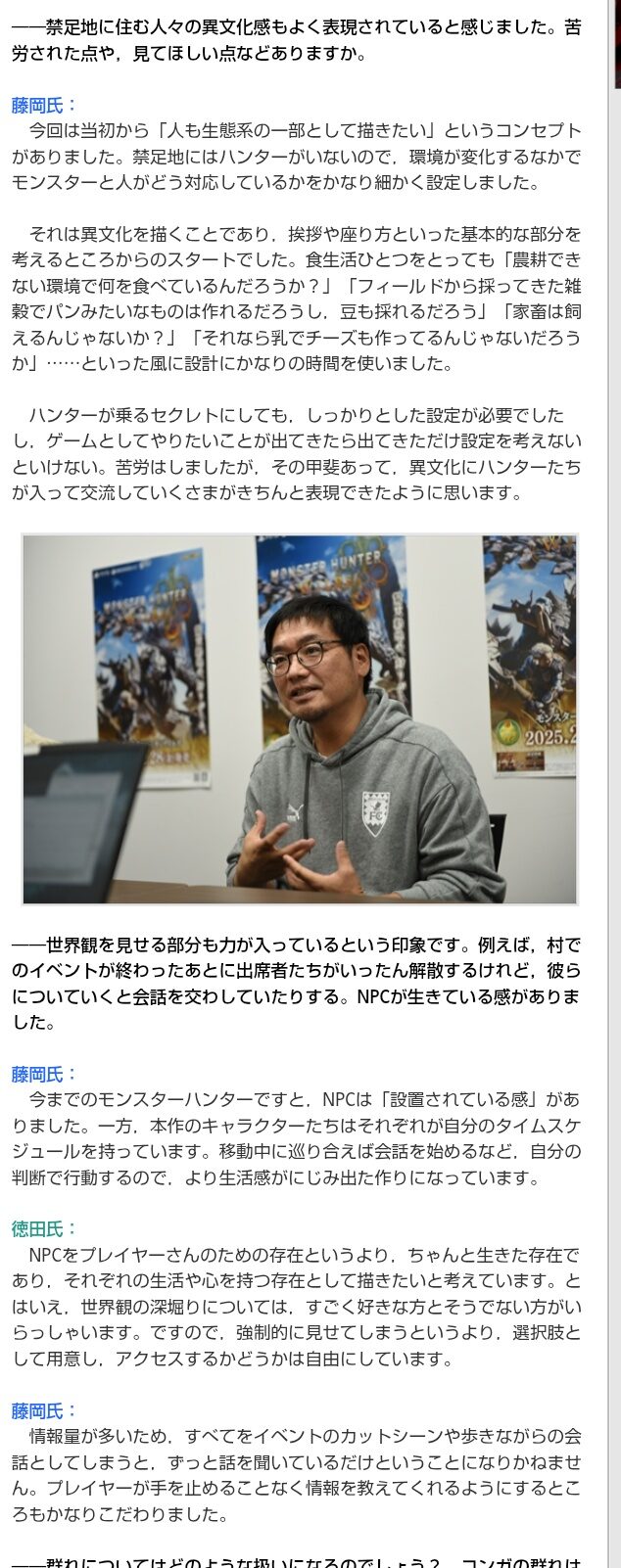 開発陣のコメント的にまさにそういうこだわり「今までのモンスターハンターですと,NPCは設置されている感がありました。」
