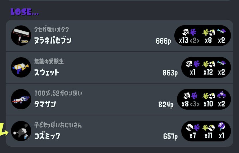 ・スシは確かにボコボコにされているが、そのスシより下に表示されている時点であんたの試合への貢献度はそのスシ以下なのに何言ってんだ