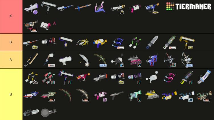 正直ブキパワーで言うとXにすら入らないと僕は思ってます!ただ今回のTierでは「①Xマッチでよく見るか」を一番重視しましたので、とにかく数が多いことを評価しました!
