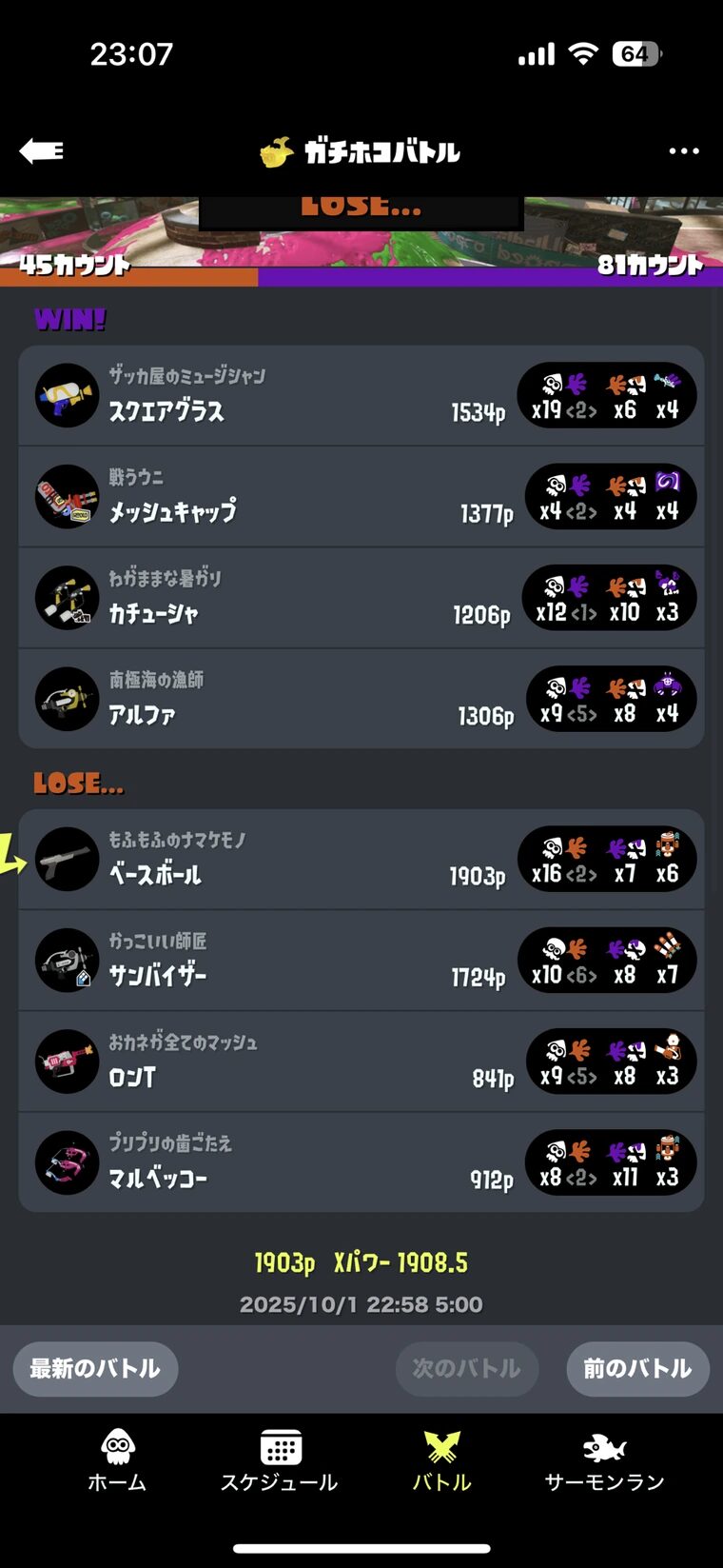 最後ホコ持ちのラピが全員気づけなかった潜伏にやられて負けたのに味方のシマネがデスナイス押してて草生えたわ