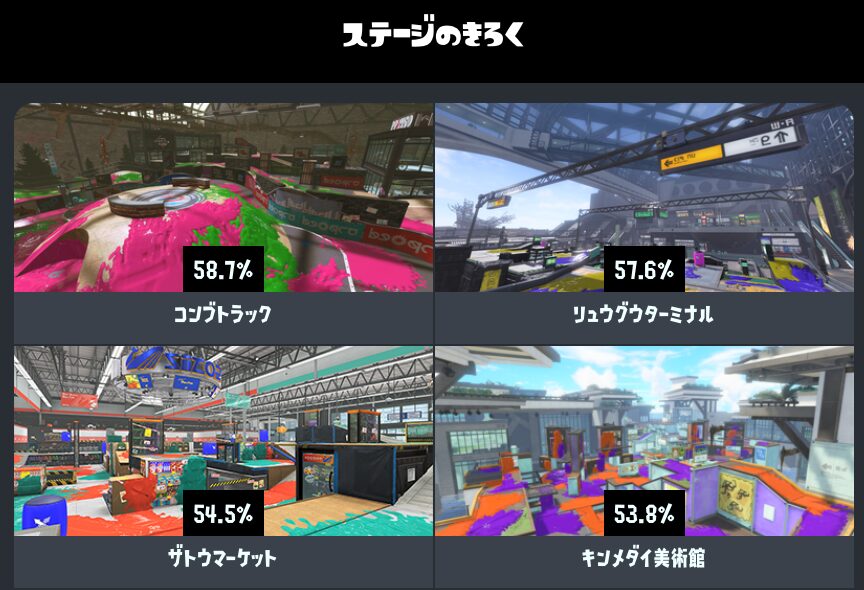 みなさん、エリアの勝率TOP4のステージってどこですか?
