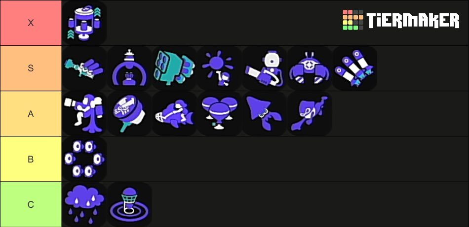 サメやショクワンがテイオウイカと同じ強さな訳が無いけど、上位帯ではサメもショクワンも使い手が凄く上手いからこの順位なのかな。下位帯ではサメ・ショクワンはCで間違いないし、そもそもショクワンは見ない。下位帯ではアメ、メガホン、ソナーの方が絶対に上だし、よく見る。