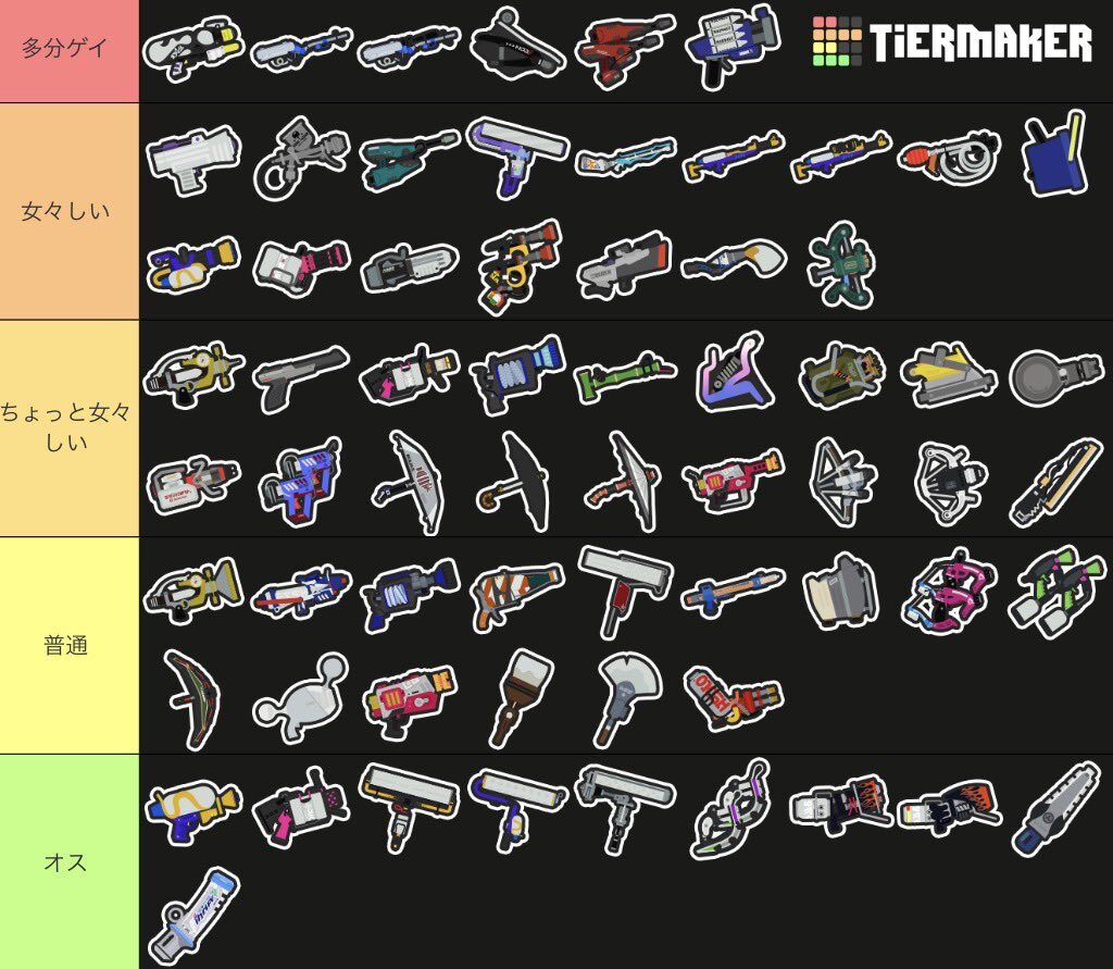 女々しい男性がよく使ってる武器ランキング爆誕!!最早ゲイ認定されたブキ達がこちらwwww