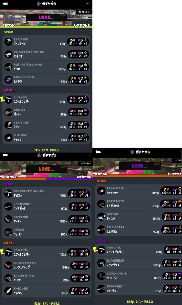今作のレートもどきの数値は当てにならんしXマッチ自体、武器わけ含めてつまらなさ過ぎるからずっとバンカラマッチやってるわ