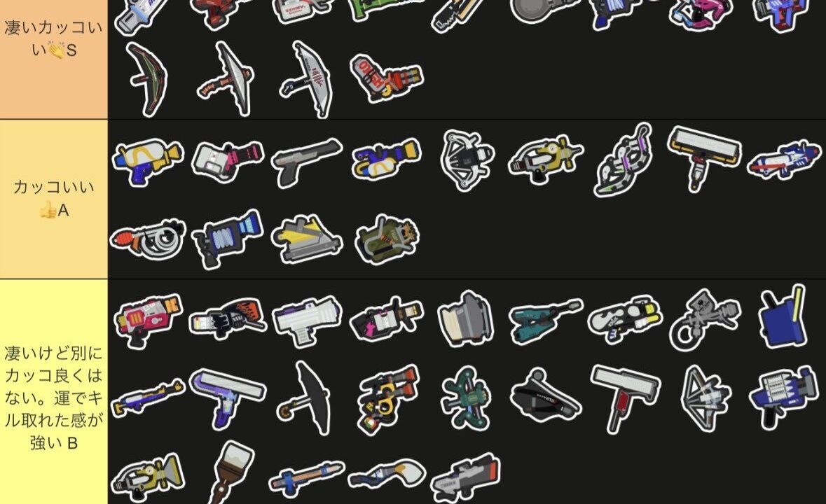 でもリッターがピカピカゴキブリみたいに蠢きながら安全圏でインク垂れ流してる姿は文句なしにかっこ悪いから一番下のTierなのは妥当