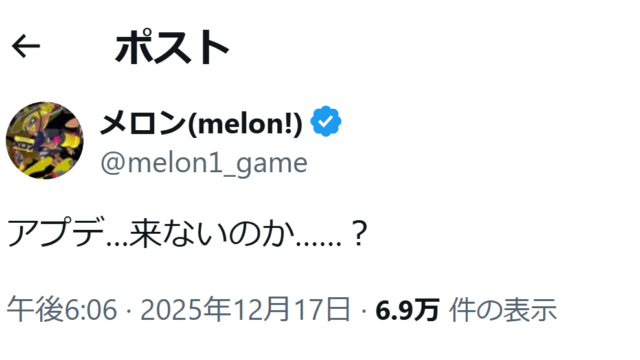 話題【悲報】メロン氏、アプデがないことに絶望