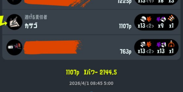 その他(立ち回り・すりみ連合・シオカラーズ・ロッカー・バンカラマッチ等)【悲報】XP2100,2.5万位マッチにて王冠プレイヤーが発見されてしまう